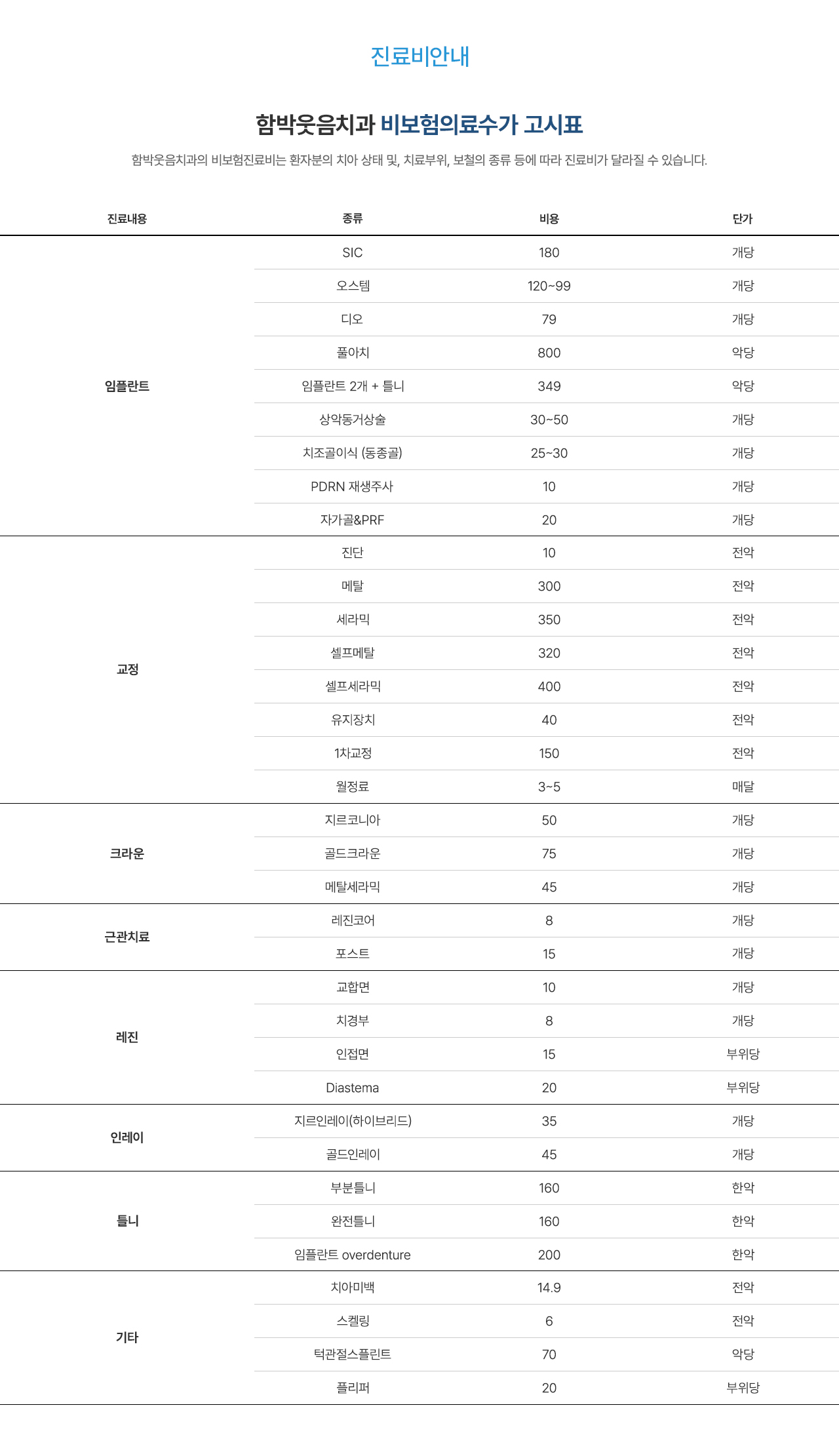 진료비안내